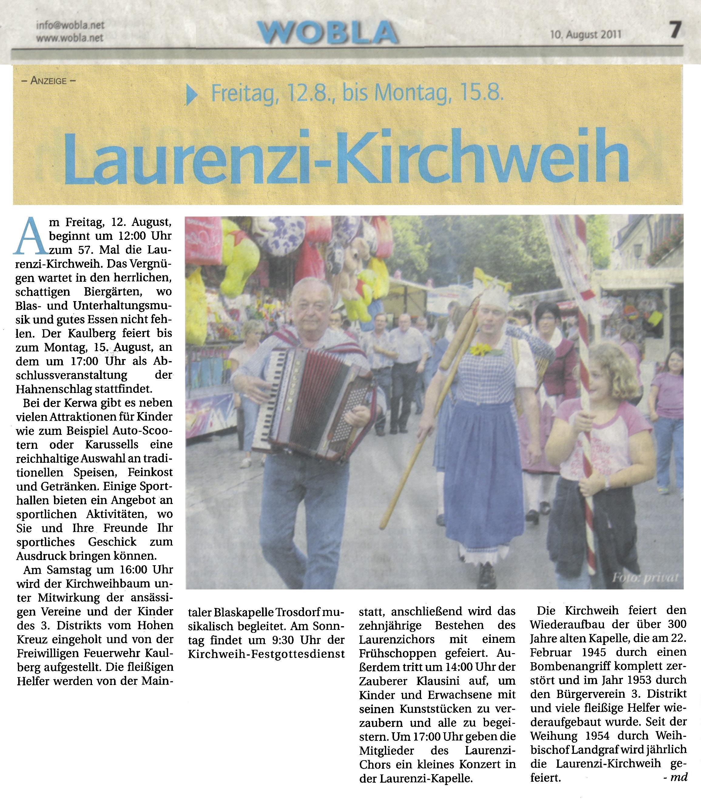 ![]() Vorankündigung der Kirchweih im „Wobla” |